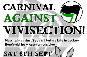 Make your stand against the vivisection industry and animal abusers at Sequani Labs. This protest is in solidarity with Sean Kirtley who was imprisoned by the state for supposedly organising protests against Sequani (See SchNEWS 634). Even though he has never broken the law himself at Sequani (and the police agree) he was sent to prison under new SOCPA legislation which shatters the right to organise and protest.