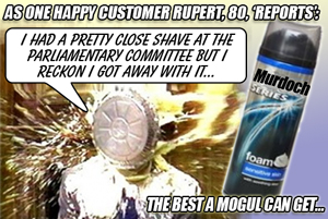 Comedian and sometime UK Uncut activist “Jonnie Marbles” was promptly arrested and carted away (to write an article for the Grauniad from his holding cell), leaving Murdoch to (nearly) face the music in front of a toothless parliamentary committee. Murdoch might have been glad of the distraction, as his empire has been held up to the light for pretty much the first time ever, and clan Murdoch has revealed itself as being vulnerable to mortal weapons (see SchNEWS 778).