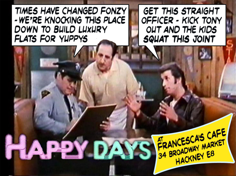 was closed last year to make way for a yuppy development, is squatted