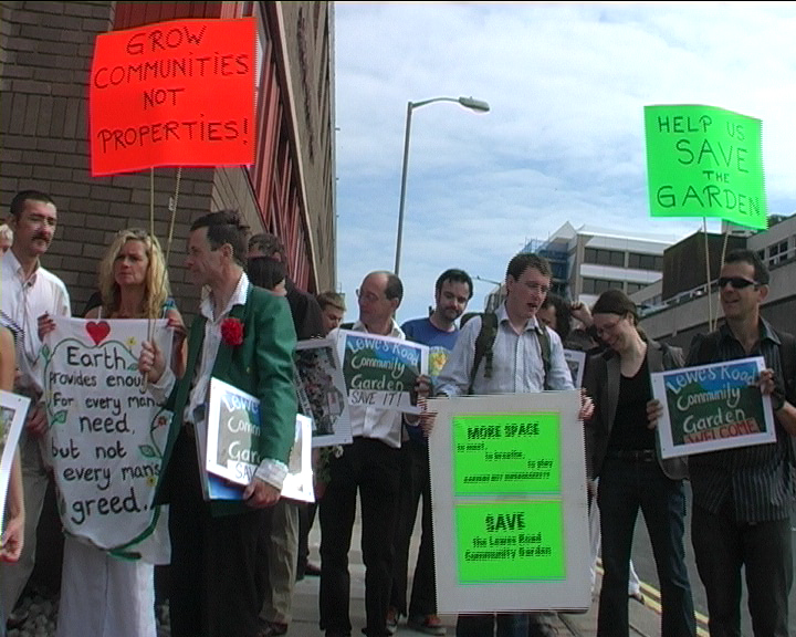 The much loved Lewes Rd Community Garden in Brighton finally get it's day in court. After a year this guerilla garden is under threat from developers who want to turn the land into another TESCOs and a betting shop. This was stage one of their master plan....