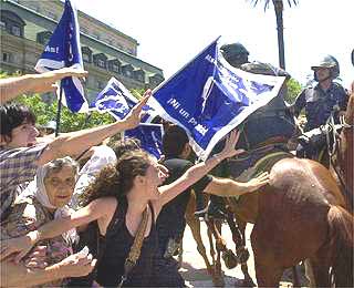 headed for the main Plaza de Mayo, banging pots and pans, chanting