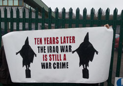Yet a look at the front pages of today’s newspapers reveals that not one has chosen to remember that the invasion was exactly 10 bloody years ago. However, the bosses of EDO-MBM, one of the UK arms factories that has profited from the war had no choice but to mark the day.