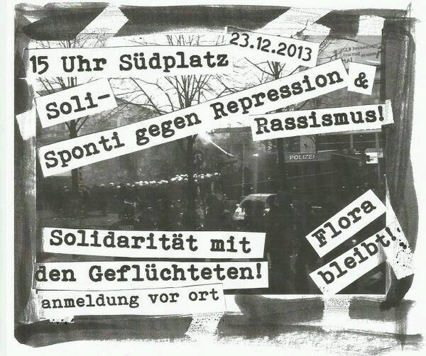 Rote Flora activists began a campaign known as "Flora bleibt unverträglich". For updates on the recent events in Hamburg keep checking Enough is Enough. You can follow twitter feeds at: @florableibt