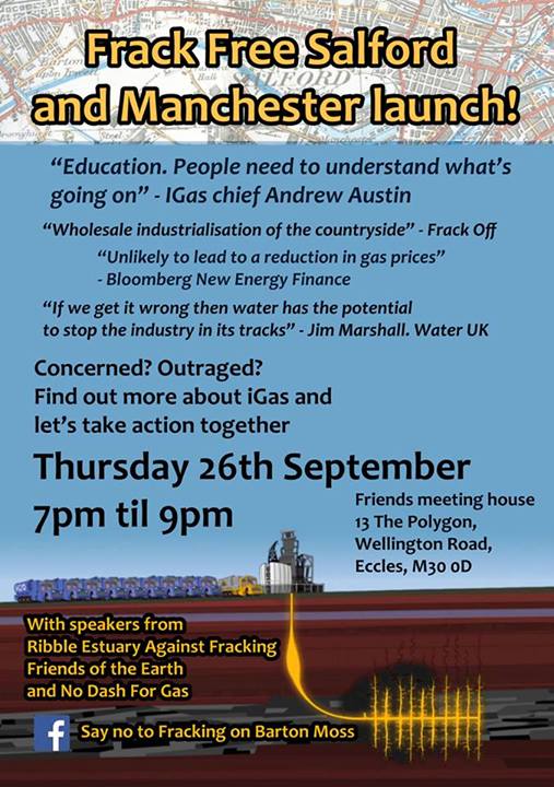 So the frack-wagon moves on. This time it's not Cuadrilla but IGas, who along with Dart Energy and Cuadrilla are the top three main players in UK 'shale play' (actual corporate speak). IGas announced plans last Thursday to drill an exploratory well in the countryside of Barton Moss in Salford, Manchester.