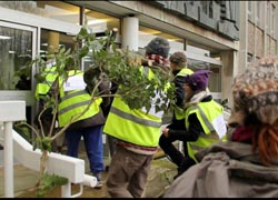 They didn't arrive empty handed however– they turned up with big bits of tree, left over from the felling at Adam's Farm. They then proceeded to wedge them into the doors of the council offices. The council's doormen seemed remarkably reluctant to take delivery of the boughs which ESCC has compulsorily purchased.