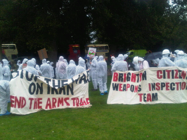 Around seventy people gathered at Brighton's Level to march up to EDO-MBM (now owned by evil mega-corp ITT-Excellis) to demand, Hans Blix style, that the factory open its gates and allow the inspectors in.