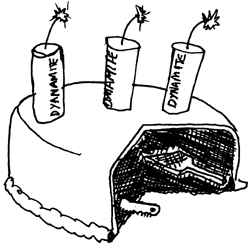 But it's also part of a wider picture - in this country and across the world - of resistance and opposition to injustice, ecological destruction and poverty being criminalised. As campaigners against single issues like roads or genetics are increasingly cottoning on to the fact that it's the whole damn capitalist system that needs to be overthrown, they're finding themselves being described as 'terrorists'. The stakes are being raised. The British State is the most experienced place in the world at quelling resistance. General Frank Kitson (who worked in Malaya, Ireland and then Britain in the early 80's) wrote the British state's handbook on dealing with 'subversion' Low Intensity Operations way back in 1971. In it he emphasises the importance of intelligence gathering using "a large number of low grade sources", "psychological operations" such as propaganda against opposition groups, use of the media to target individuals and the use of infiltrators. The aim of this activity is to divide and destroy the movement by encouraging ineffective opposition (voting for 'left-wing' MPs, marching from A to B, listening passively to public speakers at rallies, signing petitions...) at the same time as using the media, police, courts and prisons to destroy effective opposition. As Kitson puts it, the way to smash a movement is "to associate as many prominent members of the population, especially those who may have engaged in non-violent action, with the government" and "to discover and neutralise the genuine subversive element". Since May Day 2000 this strategy has been actively pursued in Britain. The police used May Day itself to gather an enormous amount of intelligence and get its mates in the media to portray such actions in the future as 'unacceptable' and those involved as 'criminal'. Alongside the arrests, raids and imprisonments, it was not long before "prominent" people "involved in non-violent action" were joining in the police's attacks on the Mayday action and specifically on alleged organisers. These people were quickly used by groups uninvolved in direct action to promote some kind of third way between direct action and doing nothing - a sort of being annoyed at capitalism while tut-tutting people who do something about it. The prominent individuals proposing this sort of ineffectual opposition soon find themselves getting newspaper columns, appearing on chat shows and generally being promoted by those in control of the media. Unless they show support for effective opposition on the streets, that is - in which case they can kiss goodbye to their newspaper columns. Kitson pointed out that it's no good just repressing opposition when people have genuine grievances - you must allow people to let off steam, but only in ways that don't have any effect. Our job is to make sure that our resistance isn't just about letting off steam, shouting at the telly and cheering people at rallies - but about taking effective action. BUTTON UP! Without any sbrand spanking new Terrorism Act came into effect just two days after the UK and good ol' USA bombed Baghdad. We've mentioned the new law plenty of times, but going to the People's Global Action Conference in Milan we heard first hand from across the globe how different governments are dealing with the growing anti-capitalist movement. And hey what a surprise, it's a pretty standard formula: spread propaganda that these people will eat your babies and that the only way to stop them is more repressive laws. But the fact remains, it isn't anti-capitalists, environmentalists or even those dastardly animal rights protestors who have been bombing Baghdad or Belgrade (yeah, we know - it was 'humanitarian' bombing). It isn't protestors who welcomed with open arms Russia's President Putin after he'd bombed Chechnya back into the dark ages. It isn't protestors who sell Hawk jets to dictators, refuse AIDS drugs to Africans because they're poor, dump toxic chemicals in the poorest countries in the world . We could go on. Quite by chance however, one clause under the UK's Terrorism Act states that its OK to bomb Baghdad as "nothing in this section imposes criminal liability on any person acting on behalf of, or holding office under, The Crown." It's just when you protest against government policy that you become a terrorist. As the saying goes, "you can't be a terrorist if you've got an airforce". BUTTON MOON The Button Factory was opened as a social centre late summer last year, and has been used for a variety of different benefit gigs, get-togethers and parties. But that's now all come to an end after the owner and his hired heavies used mechanical diggers to make the place uninhabitable. So let's get this straight - the police en masse raid an empty building and take 'materials' from it. The owners then smash up the building and make it uninhabitable. The police then keep the building guarded and under surveillance so anarchists don't try and meet there and make plans for er, smashing up buildings.