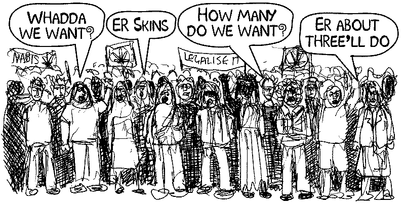 Mersey-less Treatment Ten refugees from Liverpool are on hunger strike in protest over their barbaric treatment within the British asylum system. The protest has been sparked by a combination of delays in the asylum process and appalling conditions in the flats where the group live, owned by a private company contracted by the government - Landmark Liverpool Ltd. Press reports last year showed residents living in damp, overcrowded, filthy accommodation. Residents have reported that the landlady threatened to have them 'sent back' if they complained to the press. "We came to this country to seek refuge from persecution," said one of the refugees, "instead we have been treated like animals." E-mail messages of support to: landmark_hungerstrike@hotmail.com or call 07801 554918 for more details. * At the end of June, the government will be opening a new asylum-seekers detention centre at Harmondsworth. This new prison will house 550 refugees - how hospitable! Picket 30th June, noon-2pm, Colnbrook bypass (A4 north of Heathrow). Close Down Harmondsworth Campaign 07960 309457. * In Bedford Yarlswood Detention Centre is about to hold 900 refugees. There's a metting on the 7 July at 22 Chaucer Road,Bedford. Tel 07767-414714 eginn@arrowuk.com Talk Ain't Cheap "The police and its thug friends have made a complete mockery of every value and principle that this nation has been struggling to establish in the last three years, along with the sacrifices that have gone with this struggle. With a single stroke, the raid in Sawangan has simply turned back the clock on the nation." Jakarta Post Editorial. Last Friday a conference near Jakarta, Indonesia, on "fighting neo-liberalism in the Asia-Pacific region" was violently broken up by 100 armed police plus a posse of machete-wielding right-wing militia thugs. Police took 40 participants into custody for 24 hours without charge, removed passports, and threatened fines and deportation. This left the militia free to attack the remaining Indonesian participants, injuring several and hospitalising two, one critically, as well as stealing conference computers, and personal belongings of delegates. When the delegates - including many Australians - were released without charge, and passports returned, the Director General for Immigration claimed that the police 'acted on their own', and declared the visas and conference legitimate. The Australian government - maintaining a 32 year 'special relationship' with dodgy Indonesian regimes, fobbed the fiasco off as a "visa misunderstanding". Budiman Sudjatmiko, organiser of the conference, must have had a sense of deja-vu: the former student radical, sentenced to 13 years jail for subversion in 1996 under the Suharto regime, was only released in 1999. Local police still treat him as a 'communist threat' and last month his parents' home was bombed. The timing of this vicious attack raises the possibility of police collusion with the gangs, and a re-emergence of the sort of alliance between right-wing terror groups and the military which featured in East Timor. www.asiet.org.au INTERFERENCE INTERFERED WITH On Election Day Interference FM broadcast to Bristol for a few hours before being busted. Members of the Radio-communication Agency spotted the transmitter on the roof of a house and arrived with lots of police. This is the second time that Interference has been busted, while other pirate radios have an easier life often broadcasting for many days. The reason Interference was busted was since the morning it was spitting rage on the waves about the election and encouraging citizens not to vote. The confiscation of transmitter and stereo has been a big blow for this collective. Show solidarity and send contributions to Interference FM, Box 6, 82 Colston St, Bristol BS1 5LR. ...and finally... New York cops bit off a bit more than they bargained for when they raided a medical marijuana club, and arrested two people for selling pot. Feeling a bit chuffed with themselves after a good days work, and finding themselves a bit peckish, they gobbled down 50 cookies that they'd confiscated. "By the end of the evening they were all red eyed and giggly" said one of the defendants. A week later all the charges against the two were dropped - looks like they may have got themselves some new customers. www.hightimes.com disclaimer SchNEWS doesn't SITA on the fence when it somes to literally rubbish puns. Bin there, dump that. Honest. Cor-blimley-theyre-practically-giving-them-away book offer SchNEWS Round issues 51 - 100 4.50 inc. postage. SchNEWS Annual issues 101 - 150 4.50 inc. postage. SchNEWS Survival Guide issues 151 - 200 and a whole lot more 5.50 inc. postage (US Postage 4.00 for individual books, £13 for all four). The SchQUALL book at only £6.50 inc postage. In the UK you can get 2, 3, 4 & 5 for 20 inc. postage. In addition to 50 issues of SchNEWS, each book contains articles, photos, cartoons, a yellow pages list of contacts, comedy etc. All the above books are available from the Brighton Peace Centre, saving postage yer tight gits. SchNEWS and SQUALL's YEARBOOK 2001 is out soon. 280 pages of adventures from the direct action frontline. With issues 251-300 of SchNEWS, the best of SQUALL, lots of photos, cartoons, subverts and a comprehensive contacts database. Copies of Yearbook 2001 can be ordered from SchNEWS for 7 + 1.50 p&p. You can order the book from a bookshop or your library, quote the ISBN 09529748 4 3. Available from the beginning of June. Subscribe to SchNEWS: Send 1st Class stamps (e.g. 10 for next 9 issues) or donations (payable to Justice?). Or 15 for a year's subscription, or the SchNEWS supporter's rate, 1 a week. Ask for "originals" if you plan to copy and distribute. SchNEWS is post-free to prisoners. You can also pick SchNEWS up at the Brighton Peace and Environment Centre at 43 Gardner Street, Brighton. To unsubscribe to SchNEWS email, send a message to listproc@gn.apc.org with only "unsubscribe schnews-l"
