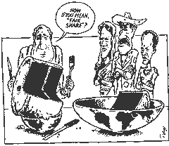 Published in Brighton by Justice? - Brighton's Direct Action collective ISSUE 329, FRIDAY 2nd November, 2001 LUNCH OUTS "Genetically diverse food resources underpin world food security. It is farmers who have developed these resources and their rights are being destroyed." - Patrick Mulvany, Intermediate Technology Development Group. Next week was meant to be the beginning of the UN World Food Summit in Rome, where world leaders were due to meet to make major decisions to help reduce world hunger. But after the hijack attacks in the US the full conference was postponed probably until June next year, instead a small scale annual meeting is still taking place although no decisions will be finalised. The World Trade Organisation (WTO) meeting in Qatar, however, is still going ahead, which goes to show that free trade liberalisation (giving free reign to multinational companies to steamroller over human rights and the environment) is more important to our world leaders than fighting starvation and securing global food security. Five years ago at the first world food conference agreements were made to try and reduce world hunger. One of the most important moves was the agreement to introduce a new legally binding convention to ensure that living things couldn't be patented - called the International Treaty on Plant Genetic Resources for Food and Agriculture (PGRFA), that would directly oppose the WTO's TRIPs (Trade Related Intellectual Property Rights, where companies can 'own' plant varieties they have 'developed'). The PGRFA aims to ensure the conservation, sustainable use and 'free flow' of the genetic resources of food crops, and also tries to ensure that if corporations use a food crop, farmers who've helped to develop it receive a fair share of the benefits. It could also ensure that genetic information from crops were public property stored in public gene banks, and could limit the increasing use of intellectual property rights where organisations can claim ownership over seeds and genes. The agreement is well overdue, over the past century over 90 percent of world crop varieties have been lost from farmers' fields. Thai'd Up "...its [Jasmine rice] acquisition by the US is an example of Biopiracy and this is why the Treaty is needed" - Pinit Korsieporn, Thai Director of Foreign Agricultural Relations. Thailand is one of the biggest rice producers in the world, producing Jasmine rice, which is made up of several of the most desired varieties in the world. This unique group of rice varieties has been grown and developed by Thai farmers for thousands of years with seeds being handed down over generations and shared. To the Thai people the concept of anyone 'owning' this rice is simply absurd. However this is about to happen as a University of Florida professor, with full backing of the US Government, is working on genetically manipulating the rice to enable it to grow in the US climate. Then he plans taking out a patent on it and selling it to the US public as "Jasmine" rice, thus undermining the export of Thai Jasmine rice and the livelihood of thousands of Thai farmers. About one third of Thai Jasmine rice produced every year is exported to the US. Such biopiracy shows the urgent need for protection for the world's small farmers. But over the 5 years since they were first discussed the PGRFA regulations have been watered down to the point that if they're ever agreed they'll be pretty much irrelevant. And there's no prizes for guessing whose been putting up the most opposition, er, yes, the US and the European Union with a hefty bit of shoving from the biotech companies. As the treaty now stands, although there will be no right to patent seeds, genes from seeds will be allowed to be patented. Because of this most countries are refusing to sign up seeds into the treaty, which increases its ineffectiveness further. But even if the treaty does live up to its original aims the one big question is whether the WTO bully boys will allow it to override their unfair-trade rules or even have an equal footing. Either way the chances are looking slim for the world's farmers who may soon be forced to wave goodbye to the free exchange of seeds and their rights to profit from seeds they've developed over thousands of years of innovation. So after years of negotiations, those in power look like they will be offering the world an empty bowl. As Pat Mooney from RAFI/ETC Group remarked recently, "By participating, both NGO's and grassroots groups, lend legitimacy to these international meetings, but if they continue to refuse to listen to them, and translate that into action for good, then it's time to stop taking part." For the latest information check out www.ukabc.org and www.itdg.org * March for Trade Justice. Saturday 3rd November, starting from Geraldine Mary Harmsworth Park, outside the Imperial War Museum, Lambeth Road, London SE1 at 12.30pm, the Parade will go to Trafalgar Square (speakers at 3.30pm). www.tradejusticemovement.org.uk Bombed Out At the same time as randomly dropping food parcels from their planes,America have also been dropping cluster bombs. Cluster bombs are extremely nasty weapons that are used instead of landmines to hit moving targets, when released the bombs separate into smaller bomblets, up to 5 percent of these remain unexploded. Just like landmines they pose a great threat to innocent civilians. By some bizarre coincidence both the food parcels and the cluster bombs are yellow. When this was discovered the US was forced to broadcast a radio message warning the people of Afghanistan not to touch any yellow coloured objects they find particularly in areas where bombs have been dropped. Well they can say goodbye to their monthly meal then!