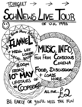 time for the SchNEWS first birthday party in November '95, someone