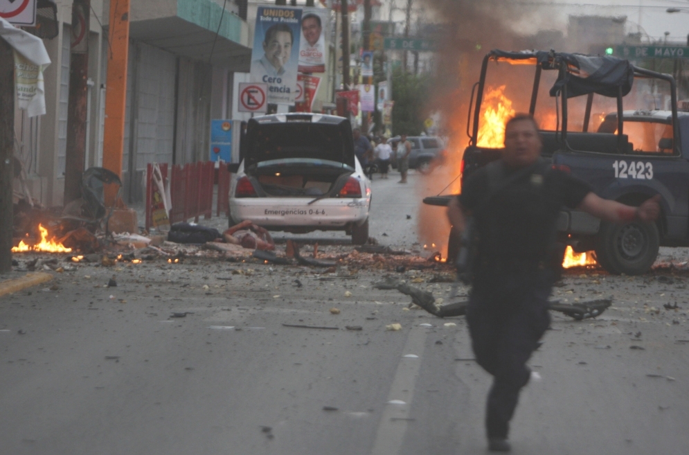 A milestone in narco-terrorism was passed a month ago, on July 17th 2010, when a car bomb exploded in Cuidad Juarez. In a level of sophistication that would make Al Qaeda blanche, the narcos took a body (believed to be that of a local mechanic) and dressed him in a policeman's uniform. They arranged his body to look as if he had been recently attacked. When the police arrived at the scene the narcos exploded 10 kilograms of C4 explosive, killing 3 police and injuring 15. The attack can be seen here (not for the faint hearted): www.youtube.com/watchv=5CItXmyWbOg&has_verified=1 . The carbomb came with a warning, written in graffiti next to the bomb site, "What occurred will continue to happen to the authorities that carry on supporting El Chapo."