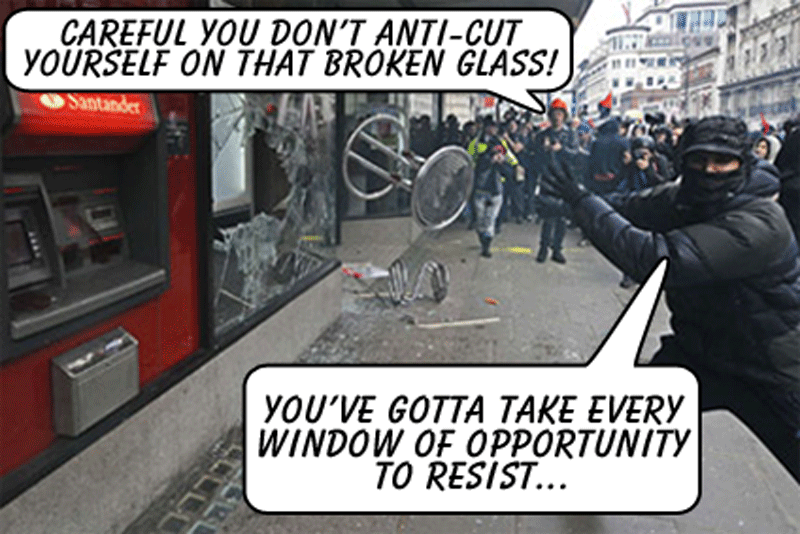 anarchists ran riot across central London yesterday, turning a peaceful