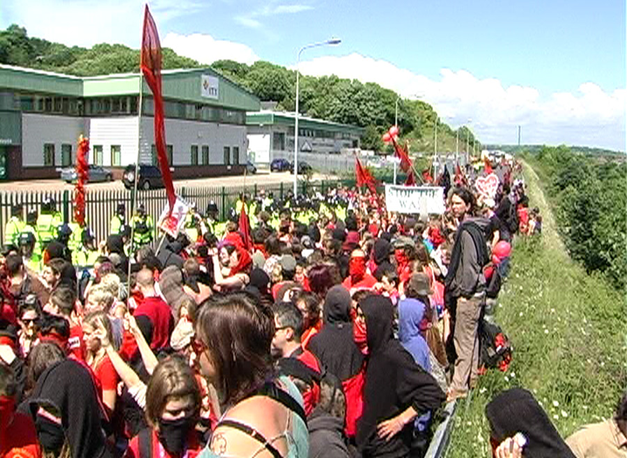 Coverage of 'Red Wednesday', Smash EDO's mass nationwide mobilisation against the Brighton bomb making factory, recently taken over by nazi scumbags ITT. With a large turnout and a minimal police presence no one was sure what to expect.... and it turns out nor did the police.