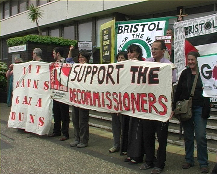 Short reportage of day one of the Decommisonners trial, where nine activists are on trial for smashing up the Brighton based bomb component factoty, EDO/ITT in Januray 2009. The trial is not so much if they are guilty but if EDO/ITT are guilty of illegally arming the Israeli military...