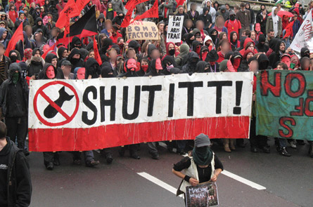 For more coverage on the Shut ITT demo on October 15th 2008 SchNEWS 651