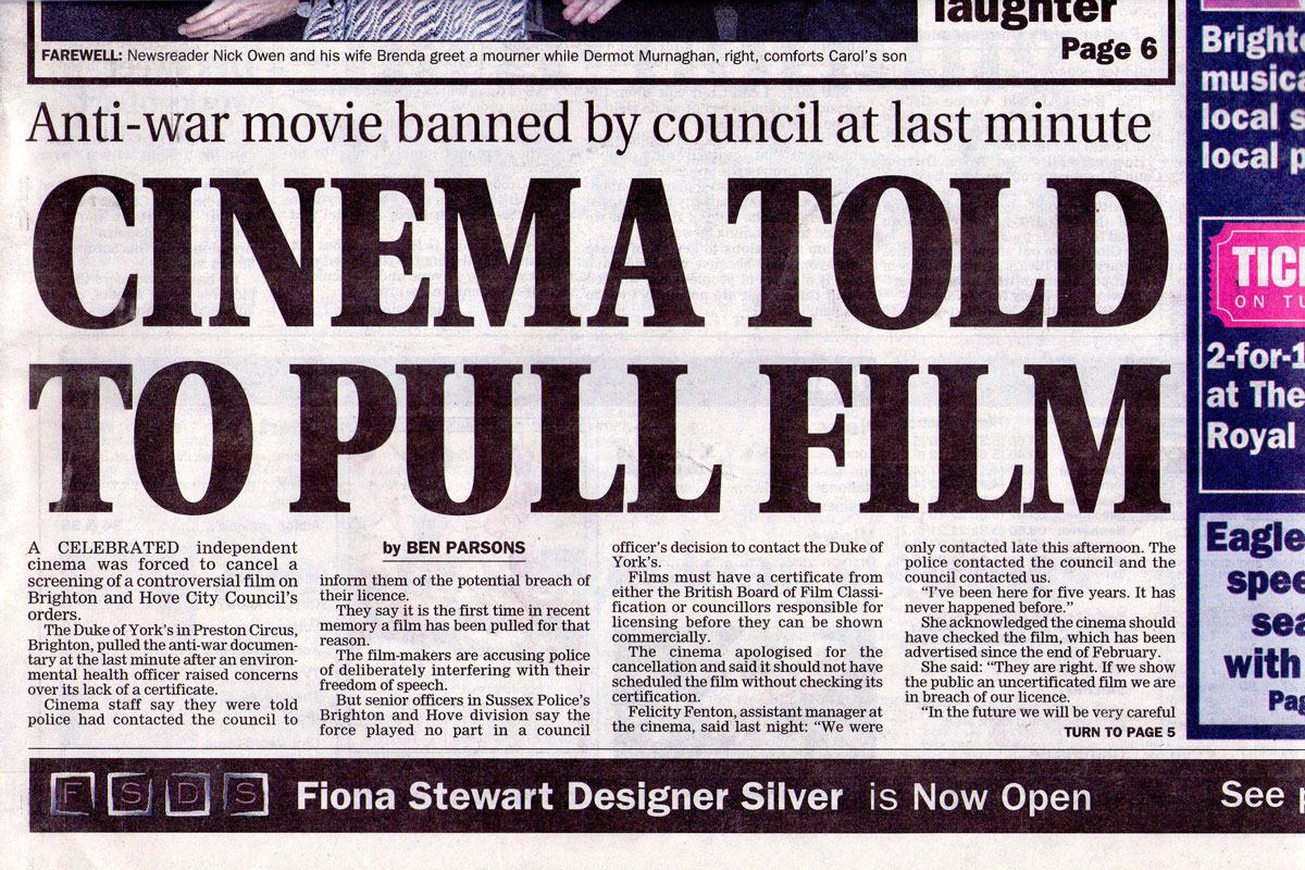 * Screenings are being closed by the police, including the premiere at the Duke Of Yorks Cinema in Brighton. Several venues around the country due to host the tour have already been intimidated by police. To read about it click here