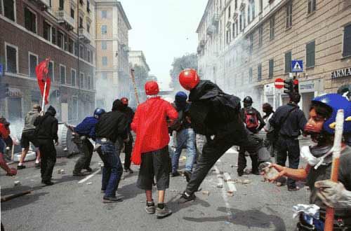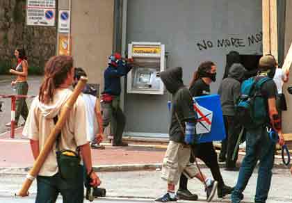 the despised carabinieri. Approaching the wall of the G8; 'Here