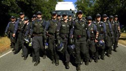 Once the cops cleared the road they were able to remove and arrest around 30 people, including those locked-on along with a few bystanders such a SchNEWS's local MP Caroline Lucas, but this was after a good six hours. On the whole, we've been told, the police seem to be targeting “effective people or stereotypes”.