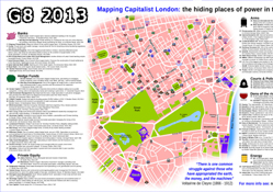 Stop G8 have produced a map especially for this event, showing “the hiding place of power”. Among all the dodgy financial vultures and weapons dealers, this also features Buckingham Place – “hideout of the infamous Windsor family”. The J11 map is causing a few ripples among the pin-stripe suit brigade in the West End – emergency breakfast meetings all round! According to the Financial Times, hedge funds have been liaising over how to handle the protests and have been in contact with the Metropolitan Police over ways to deal with the “threat”. It quotes an anonymous employee of one of these firms as saying the contingency plan may include getting staff to work at offices elsewhere in London on the day of the protest, or asking staff “not to dress like a hedge fund manager” on their journey to and from work. But how will they avoid dressing like a hedge fund manager who’s trying not to dress like a hedge fund manager?