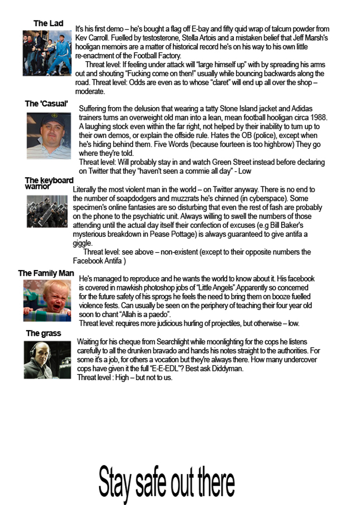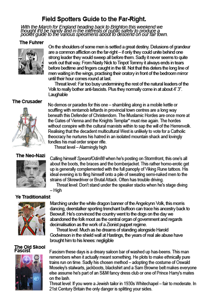 With the far-right about to descend on our fair town we thought it best to give you a spotters guide to the specimens on display.