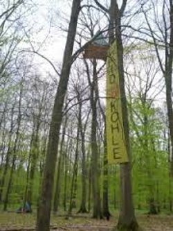 A remaining part of the Forest was first occupied in April 2012 to resist the destruction. That occupation was evicted, over five days, by cops struggling to cope with Germany's first tunnel lock-on. But activists have repeatedly reoccupied sites in the area, using the usual protest site tactics like treehouses and tunnels. A site in the meadow is still running but at the end of March, the latest woodland site was evicted again, but this has not put off the dedicated treehuggers.