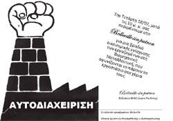 Thus it has been that more than a year since the factory officially closed down. At the start of summer the administration announced the factory would not reopen due to lack of funds. Cranking up the DIY dial, in July, the workers union proposed that the factory should be taken over and go under workers control (a proposal which received the support and acquiescence of 98% of the Assembly). They demanded the resignation of all members who were previously part of the management and declared their intention to introduce legal co-operative enterprises.