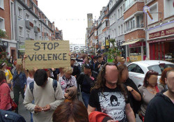 Around 500 people - Including migrants, solidarity activists, humanitarian associations, lefties, antifa and more - assembled in the town square and then made their way through the main streets, following a samba band and chanting in support of refugees and exiles.