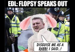 Firstly and most importantly, absolutley nothing that comes out of Tommy Robinson's mouth is to be trusted. One minute he's proud of everything the EDLs ever done – the next denouncing them as riddled with racists. He's always struck SchNEWS as a chancer, along for the ride and in love with the limelight, rather than a serious political contender.