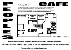 However, amidst these seasonal good tidings, a petition has been lodged by the owners PricewaterhouseCooper (PWC) to remove the illegal dwellers before Christmas is out. One member of the occupation is to represent The People´s Cafe at His proposals are to invest in the space as a community project as opposed to previous offers of turning the listed building into ´flats with added business space´. Profit previously obscured any possible vision of a collective organization at the cafe as allegations of bankruptcy and corruption are doing the rounds among the disheartened artists and musicians that once loyally frequented the venue.