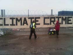 The protesters stayed put through rain and shine for seven hours, agreeing to leave only once police cutting teams turned up. They managed to get away without getting nicked and took all their gear with them, ready for next time.