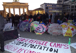 Demonstrators from the existing refugee protest camp in Oranienplatz, Berlin that was set up in early October decided to set up a second camp by the Brandenburg gate (associated with the desire for freedom since the fall of the Berlin Wall) on October the 24th.