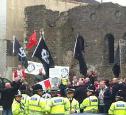 After days of spreading misinformation to the police, council and opposition groups, the National Front finally held their annual 'White Pride' demonstration at Swansea Castle on Saturday. By doing their best to convince residents that it wasn't going ahead and keeping their rally point secret – it was obvious that the organisers didn't expect any public support and were worried about the size of the opposition. Unfortunately, one group that fell for the trick were Swansea Unite Against Fascism (UAF) who called off their counter demo after apparently being assured by police that the event wasn't going ahead.