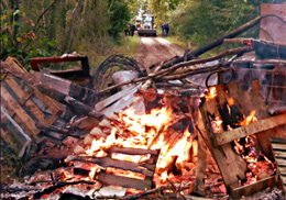 The day before we left the barricades had been taken down the day before and the police presence was still there still ID controlling people, as they were at the cabins, where there had been a constant battle between cops and people agitating.